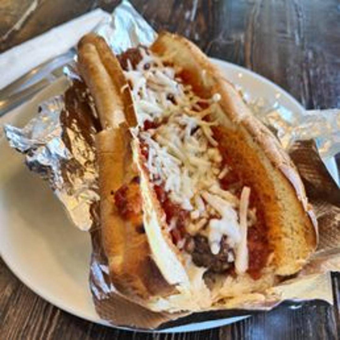Classic meatball sub with homemade meatballs simmered in marinara sauce, topped with melted mozzarella cheese, and served on a toasted Italian roll.