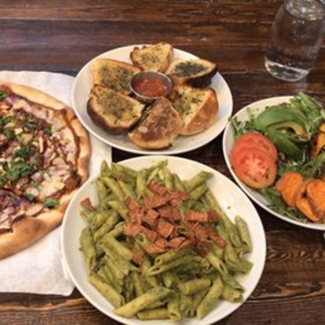 A taste of paradise on a pizza! This features a tangy and smoky BBQ sauce base, topped with grilled chicken, red onions, cilantro, and a blend of mozzarella and provolone cheeses. A slightly sweet and savory combination.