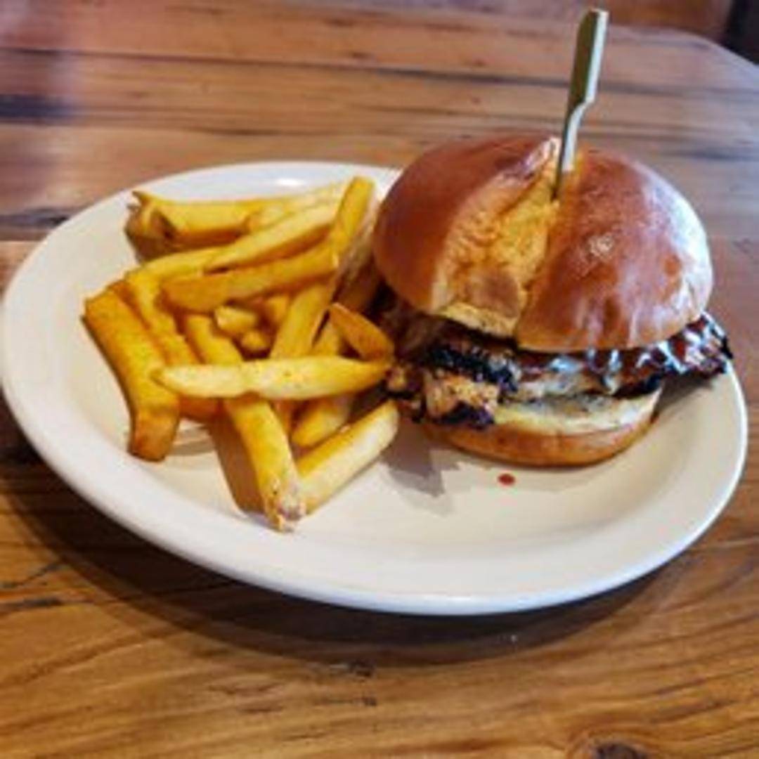 Grilled chicken breast marinated in Caribbean spices, served on a toasted bun with lettuce, tomato, and a tangy mango salsa. Served with your choice of side.