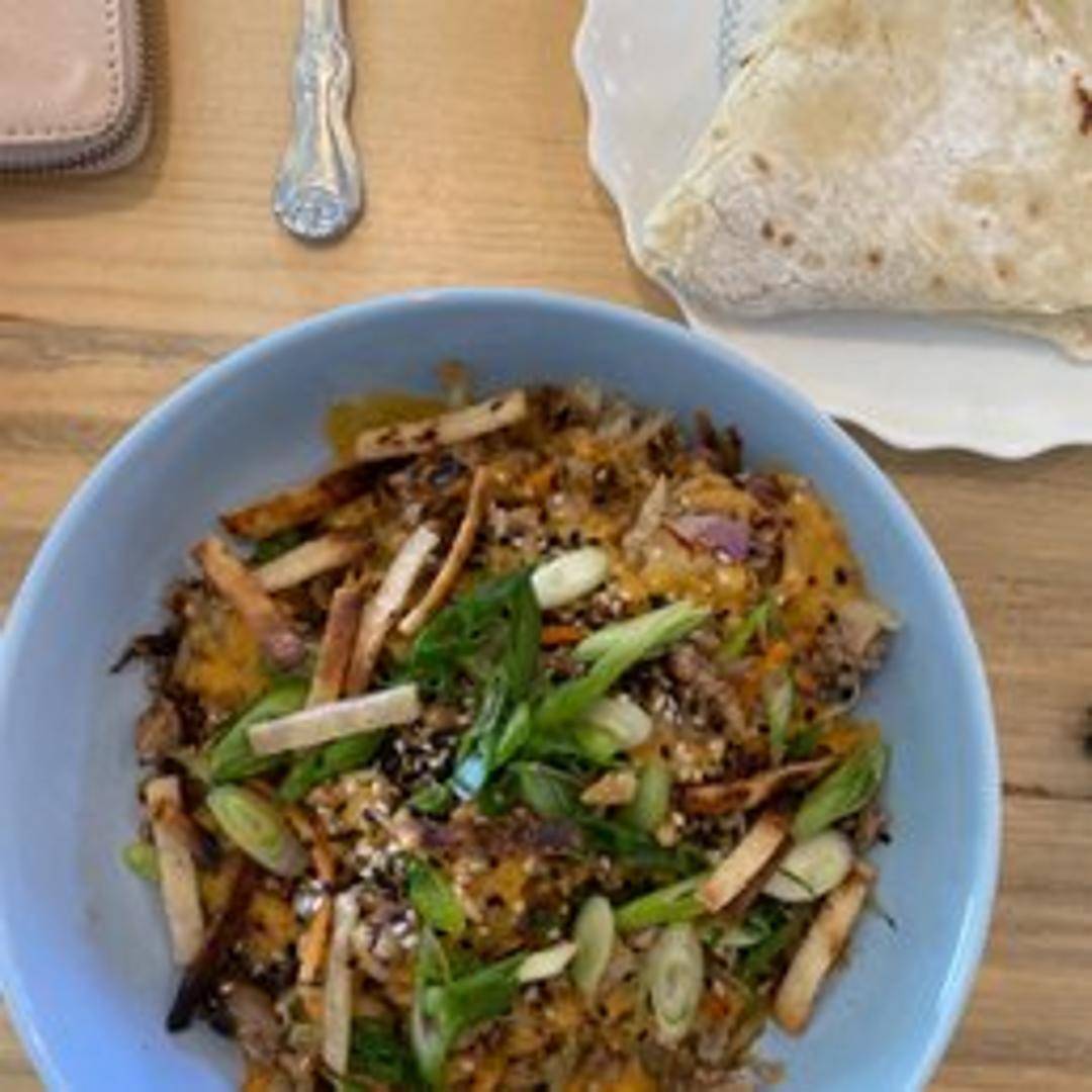 Crispy and savory egg roll filled with seasoned ground pork and vegetables, wrapped in a grain-free wrapper. Served with a side of dipping sauce.