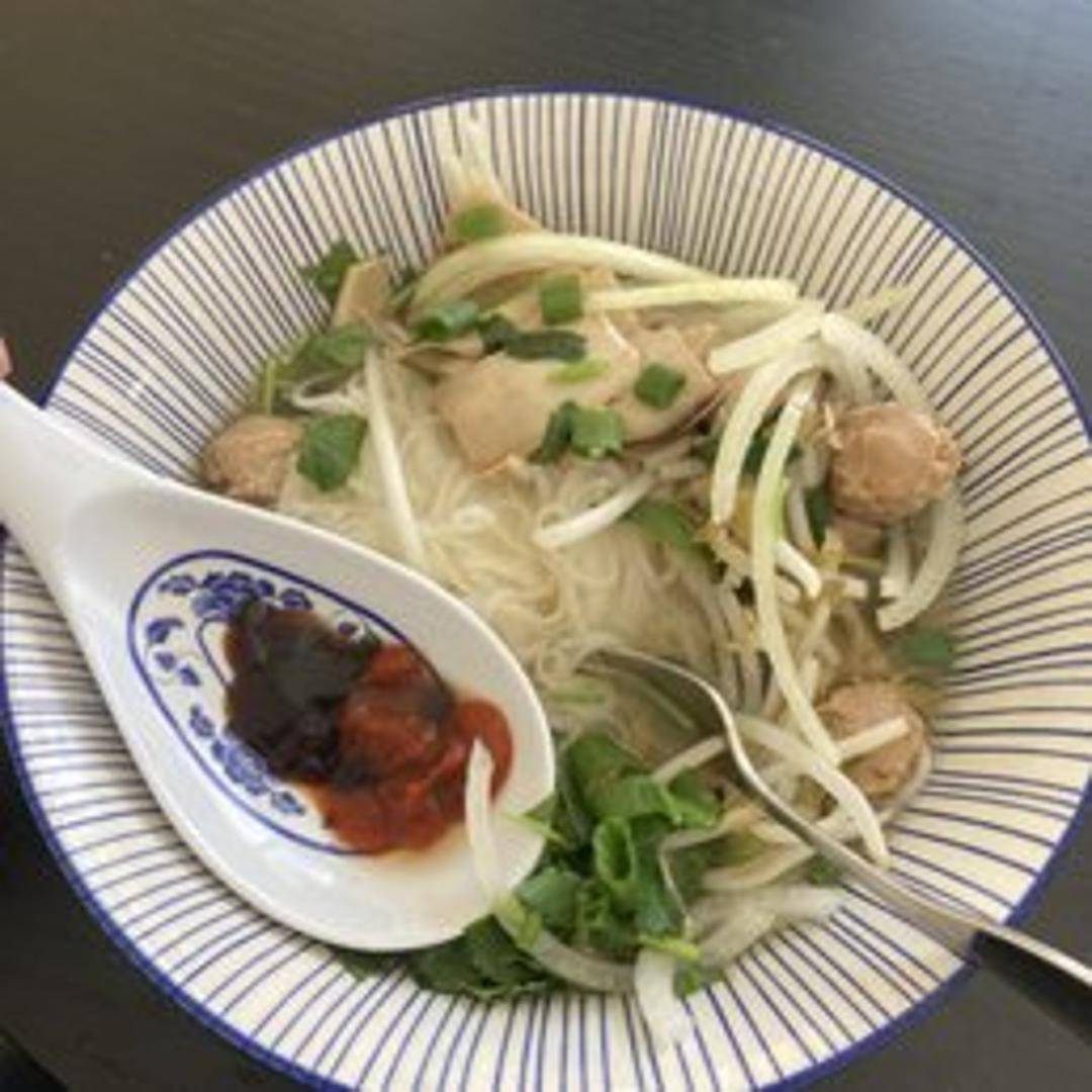 A flavorful and aromatic Vietnamese noodle soup with a light, savory broth, rice noodles, and an assortment of fresh and cooked vegetables such as tofu, mushrooms, bok choy, and carrots. Garnished with fresh herbs like cilantro, basil, and bean sprouts. Served with a side of lime, jalapenos, and vegetarian-friendly sauces for customization.