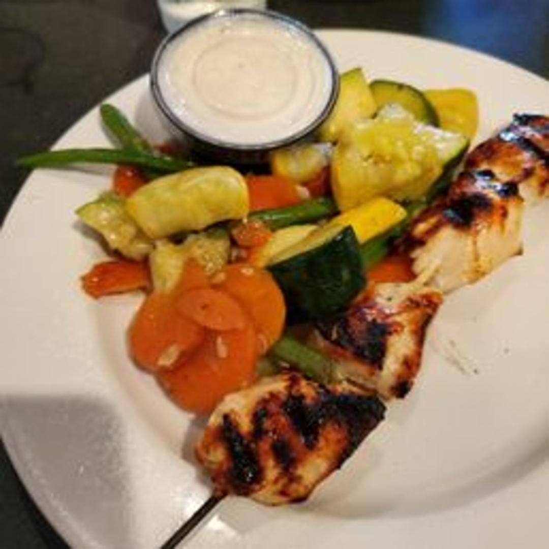 A masterfully prepared skewer of tender chicken, meticulously marinated in a rich blend of savory Mediterranean herbs and spices, then grilled to juicy perfection. Each succulent piece of chicken boasts a delightful char and a depth of flavor, offering a classic and authentic taste experience that is both satisfying and light.