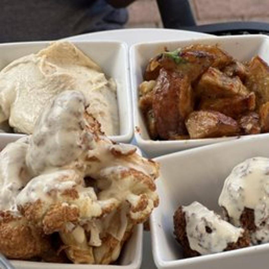 A vibrant and generously portioned assortment of fresh, flavorful vegetarian delights. This wholesome plate typically includes a curated selection of Mediterranean favorites such as creamy hummus, smoky baba ghanoush, refreshing tabbouleh salad, crispy falafel, and tender stuffed grape leaves, often accompanied by fresh pita bread and crisp garden vegetables, offering a delicious and diverse plant-based feast.