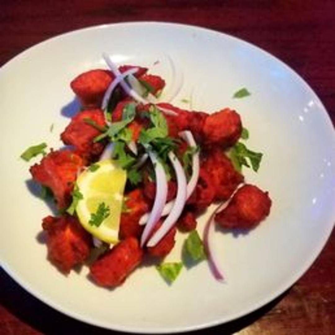Spicy, deep-fried chicken marinated in a blend of ginger, garlic, chili peppers, and aromatic spices. A popular South Indian appetizer.