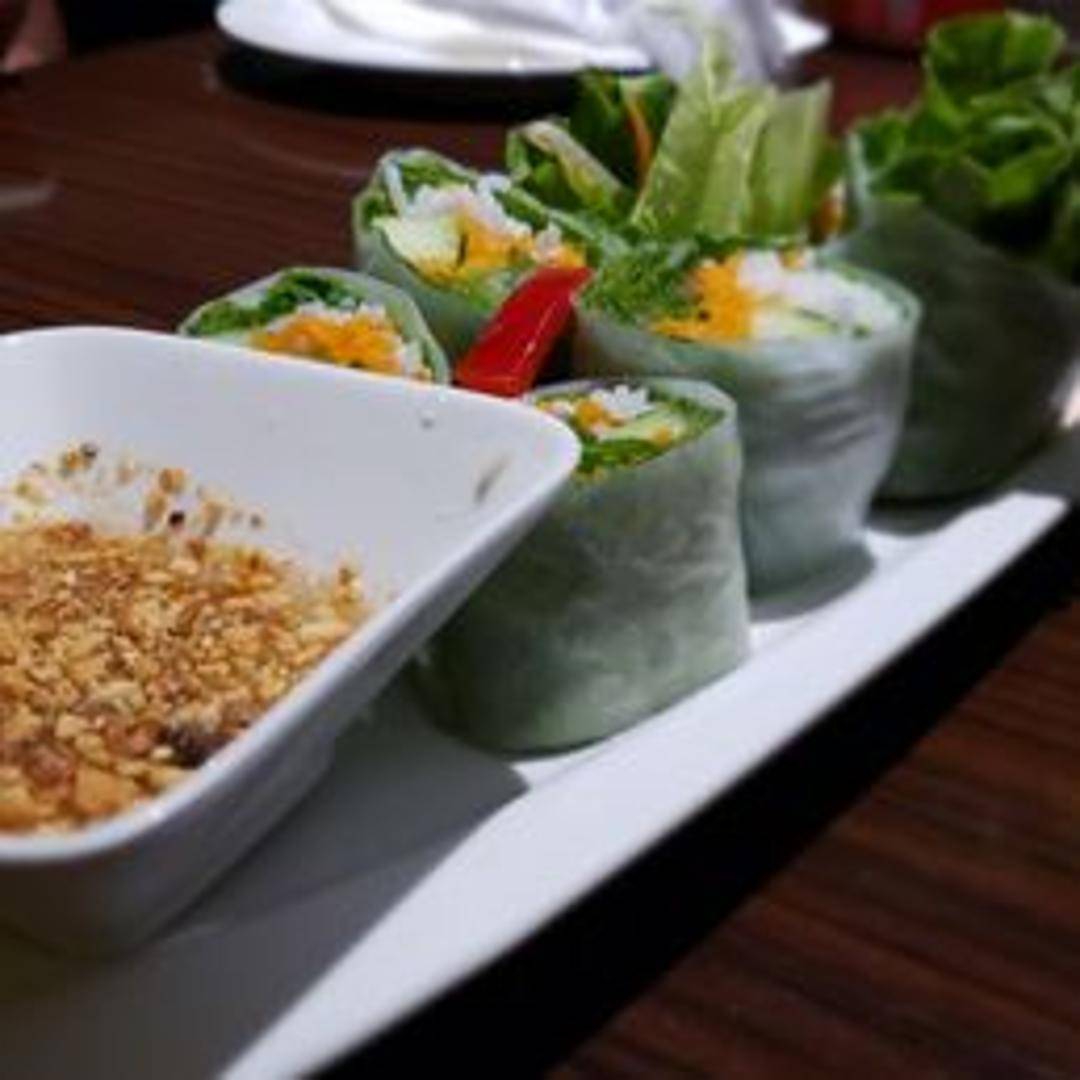 Fresh rice paper rolls filled with vermicelli noodles, lettuce, carrots, cilantro, and your choice of protein. Served with a peanut dipping sauce.