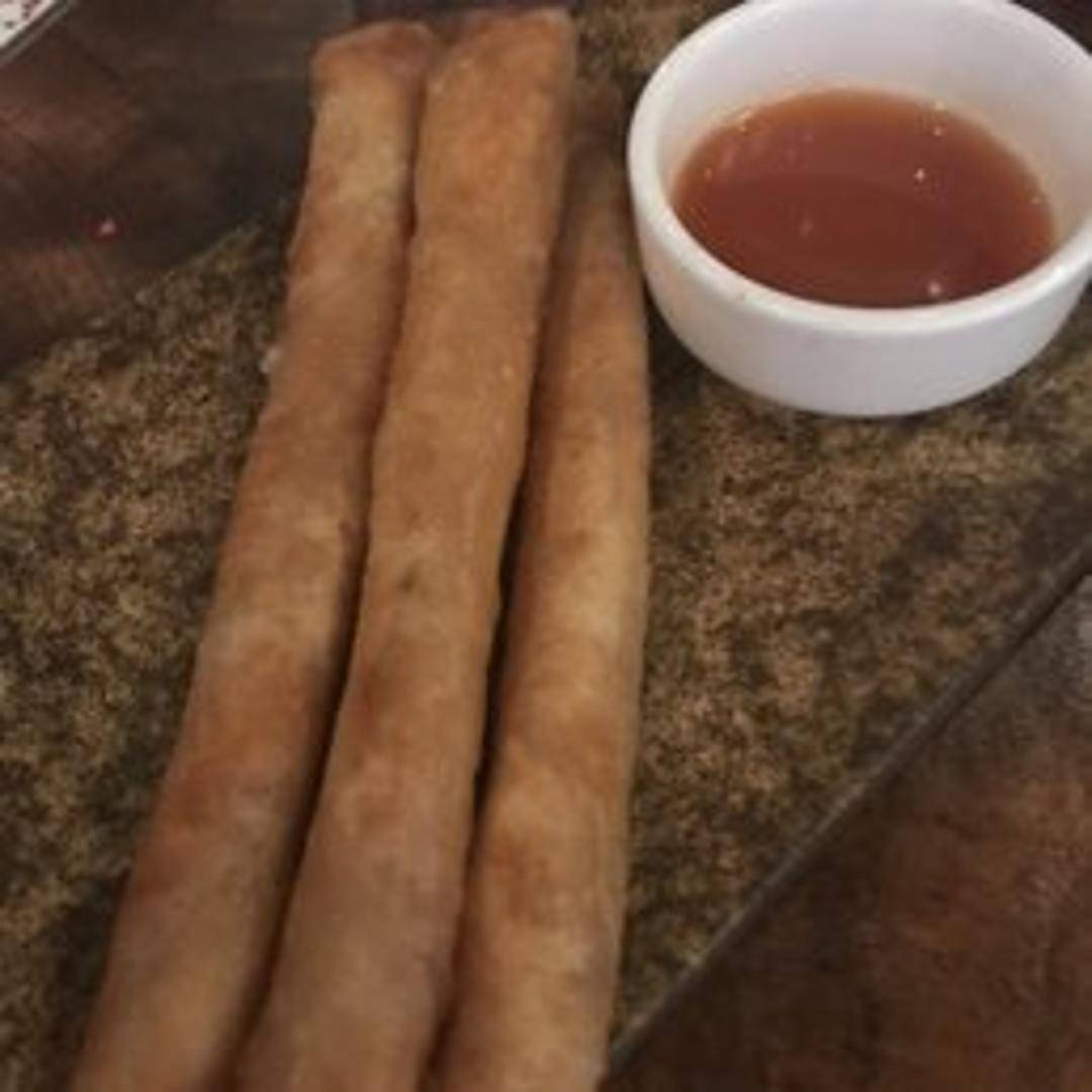 Crispy fried rolls filled with a delectable mixture of seasoned shrimp and finely chopped vegetables, expertly wrapped and fried to a golden-brown finish, perfect as an appetizer with a dipping sauce.