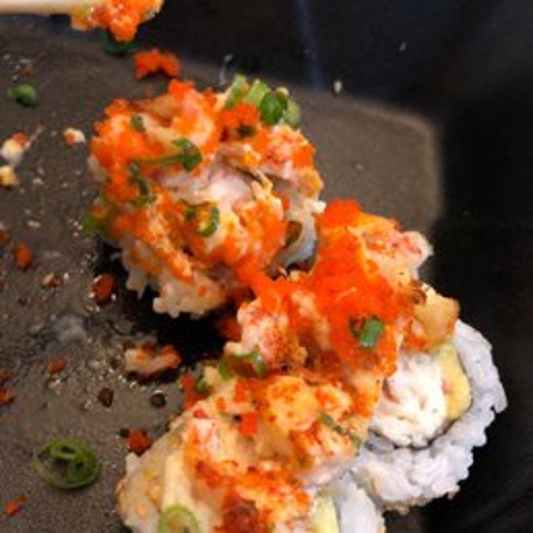 A sushi roll filled with lobster meat and other complementary ingredients, then baked to perfection. Often topped with a creamy sauce and a sprinkle of toasted sesame seeds.