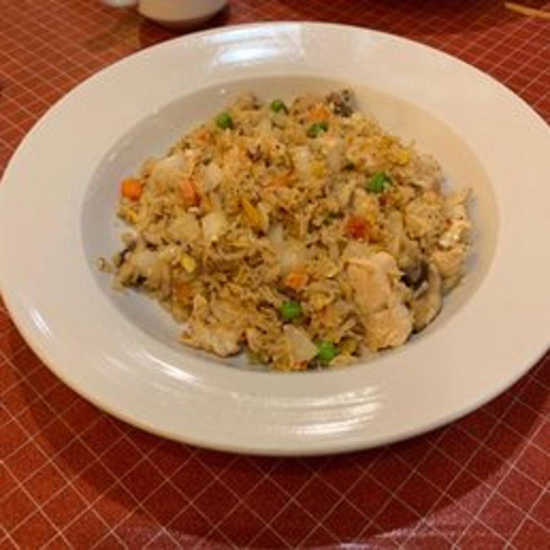 Savory Thai fried rice stir-fried with egg, onions, peas, carrots, and your choice of protein in a light soy sauce blend. Garnished with fresh cilantro and lime.