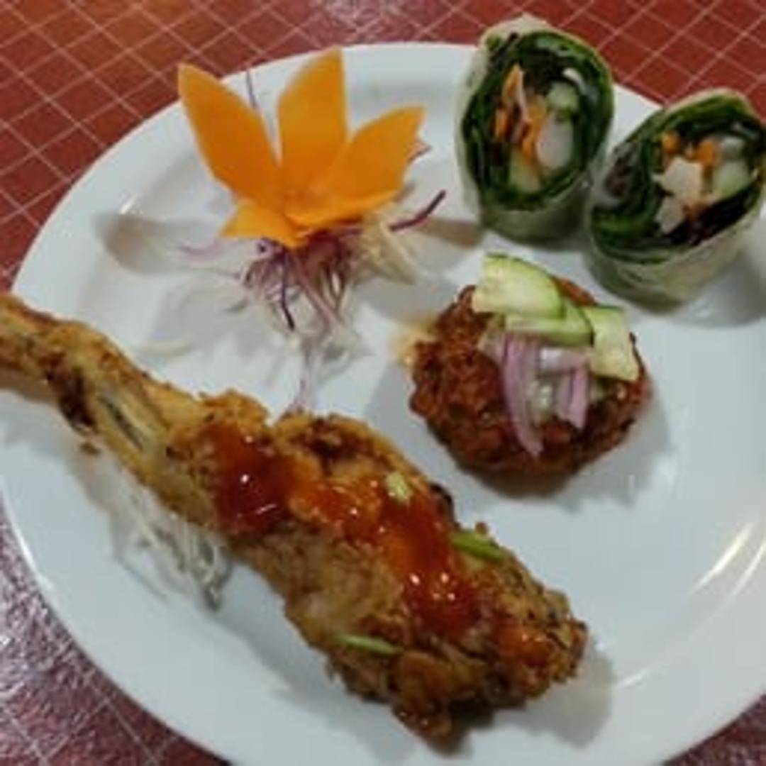 Tender and succulent frog legs, lightly battered and deep-fried to a golden crisp. Seasoned with a blend of Thai spices and served with a spicy dipping sauce.