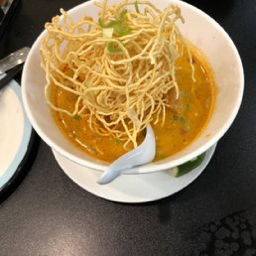 Warm your soul with our aromatic Curry Noodle Soup, a comforting bowl of tender egg noodles submerged in a rich, creamy, and subtly spicy coconut curry broth. Garnished with crispy noodles, a lime wedge, and pickled mustard greens, offering a delightful blend of textures and authentic Thai flavors.