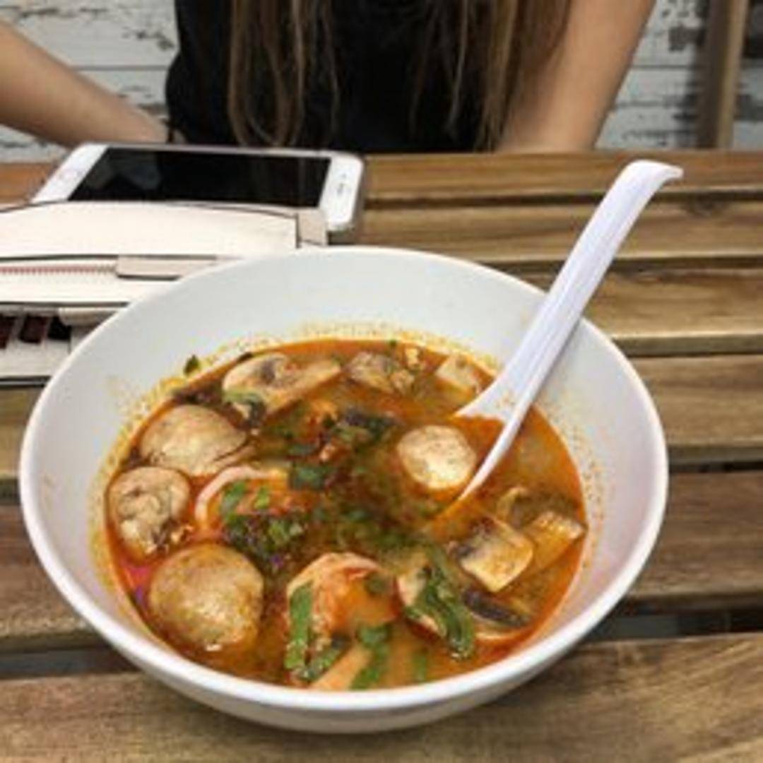 A quintessential Thai hot and sour soup, renowned for its vibrant, aromatic, and spicy-tangy flavor profile. Typically prepared with shrimp or other protein, mushrooms, lemongrass, galangal, kaffir lime leaves, and a fragrant blend of herbs and spices, garnished with fresh cilantro.