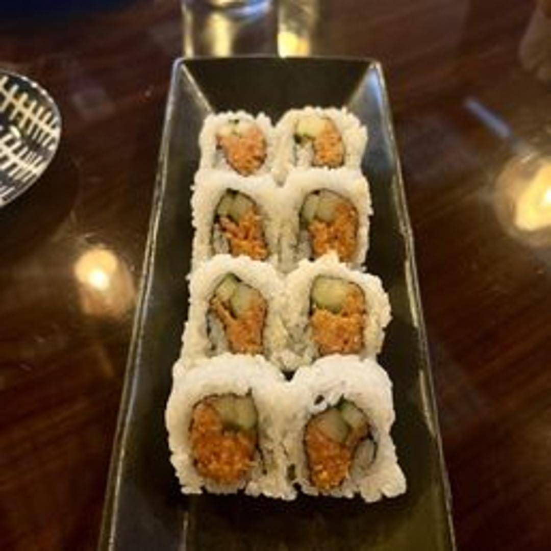 Crispy rock shrimp tempura atop a spicy tuna roll. This dish combines the textures of crunchy shrimp and smooth tuna with a spicy kick, creating a flavorful and satisfying bite.