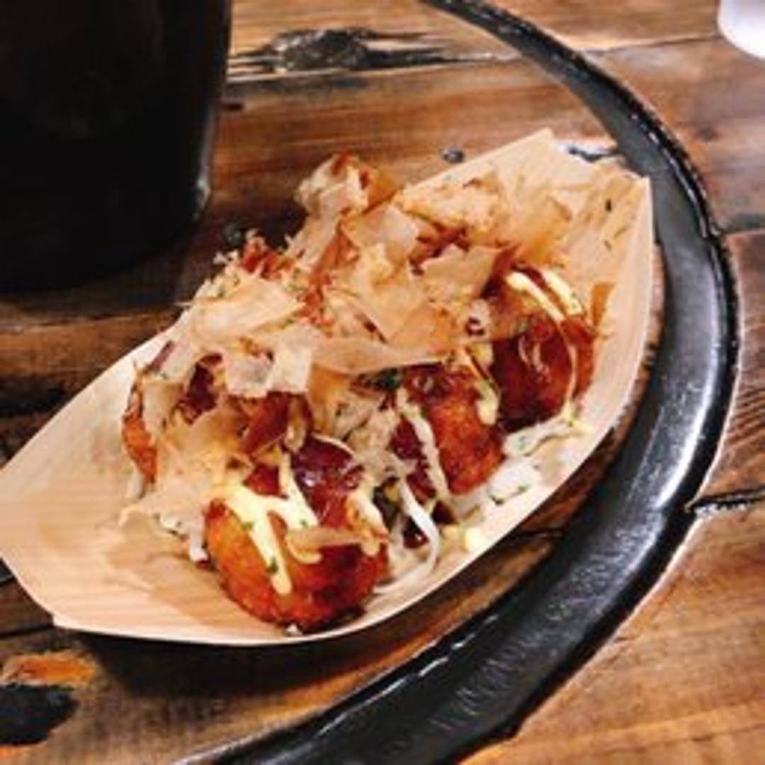 Savory Japanese octopus balls made with a wheat flour-based batter, filled with tender pieces of octopus, tempura scraps (tenkasu), pickled ginger, and green onion. Fried to a golden brown and drizzled with takoyaki sauce, Japanese mayonnaise, and dried bonito flakes (katsuobushi).