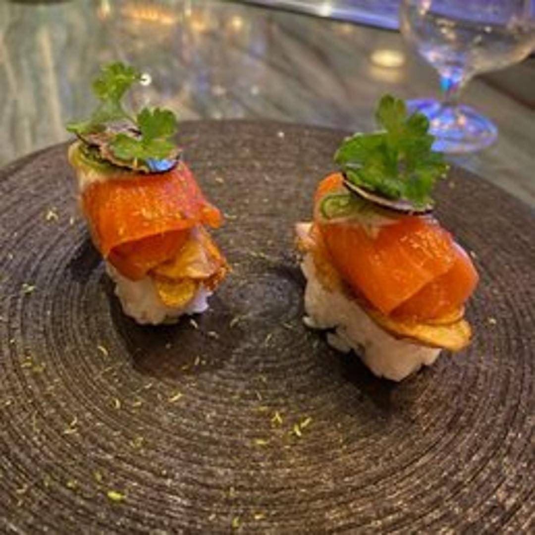 A preparation of King Salmon (also known as Chinook Salmon). The preparation style is not mentioned, but could be grilled, pan seared or as sashimi.