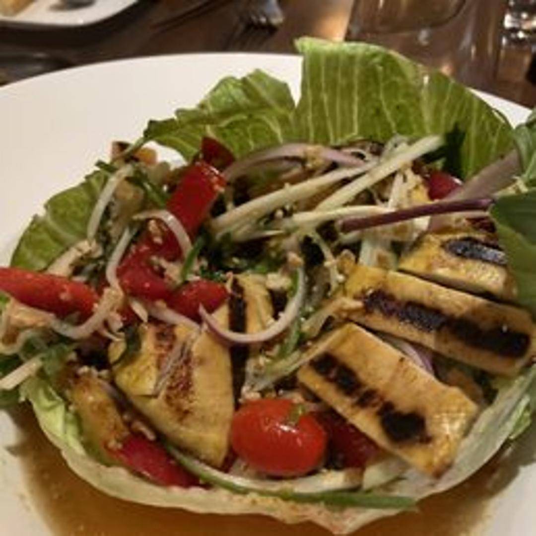Shredded green papaya tossed in a vibrant Thai dressing with tomatoes, green beans, peanuts, lime juice, fish sauce, palm sugar, and chili peppers. A refreshing and spicy salad.