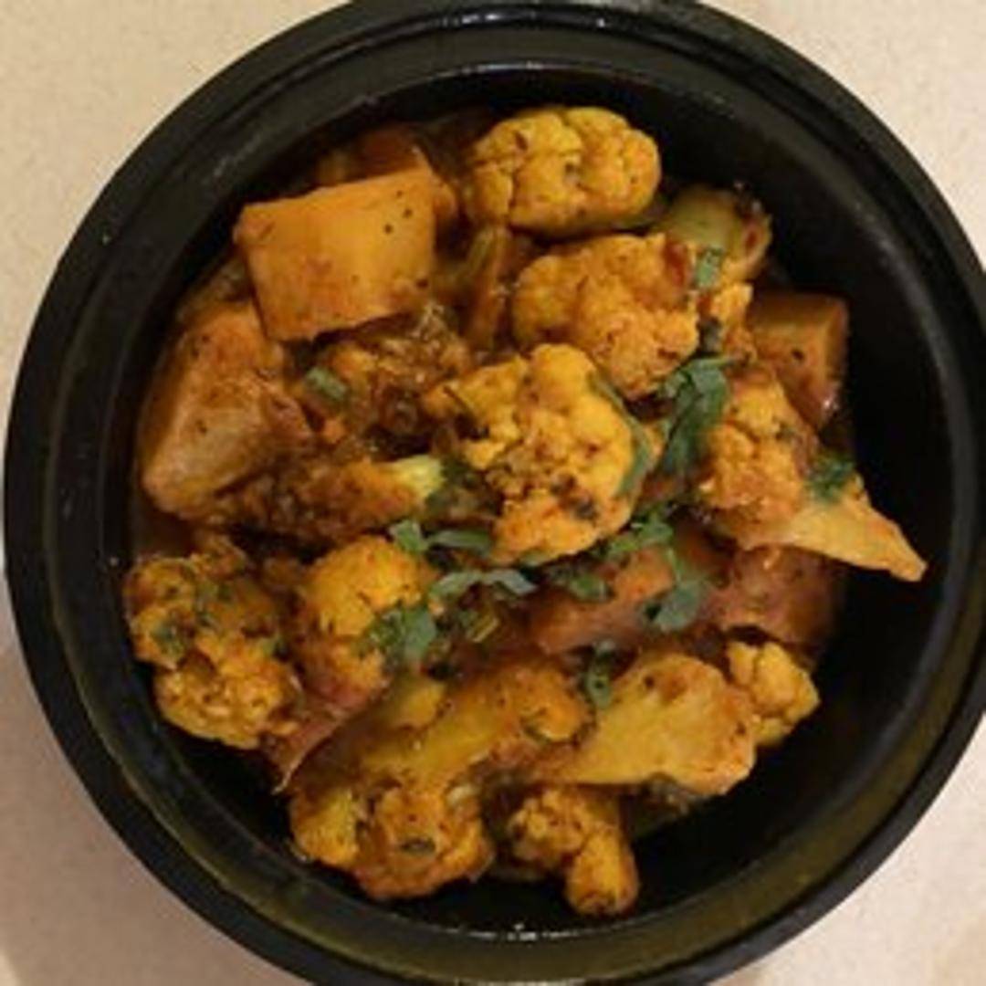 A flavorful North Indian dish made with potatoes (aloo) and cauliflower (gobi) cooked in a spiced tomato-based gravy. Typically includes onions, ginger, garlic, turmeric, cumin, coriander, garam masala, and chili powder for a rich and aromatic flavor.