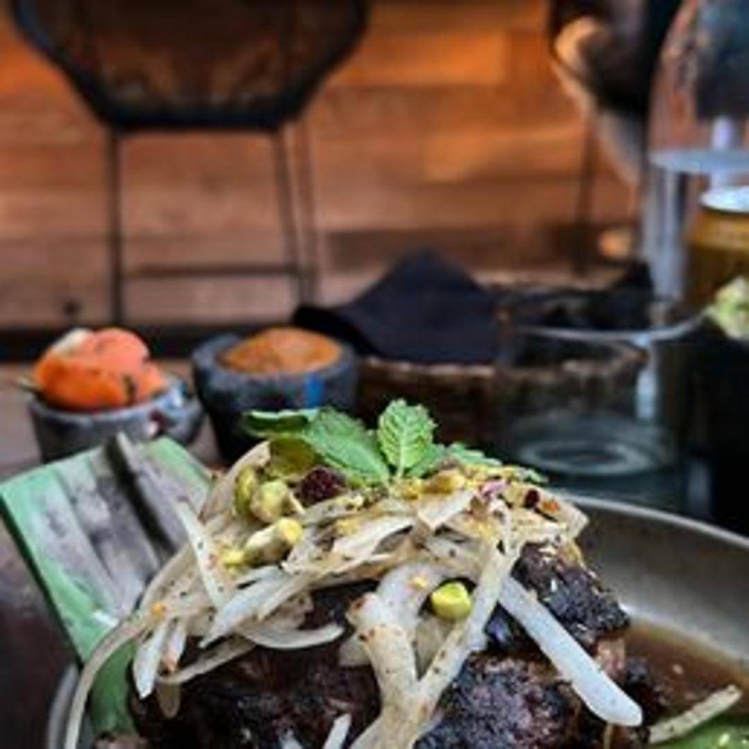 Slow-cooked lamb neck, traditionally prepared in an underground oven (barbacoa style) until incredibly tender. Often served with warm tortillas, cilantro, onions, and salsa for assembling tacos.