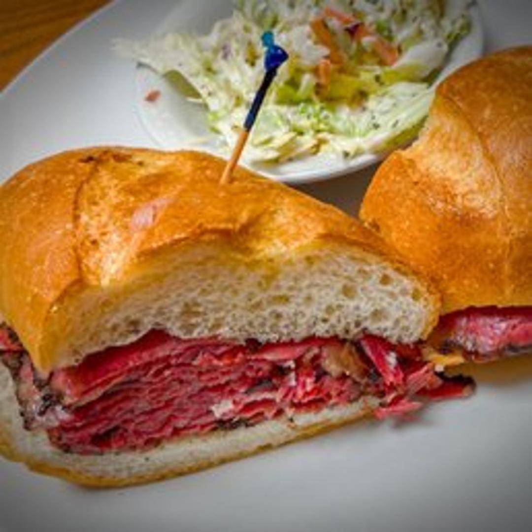Thinly sliced, flavorful pastrami piled high on rye bread, served with mustard.