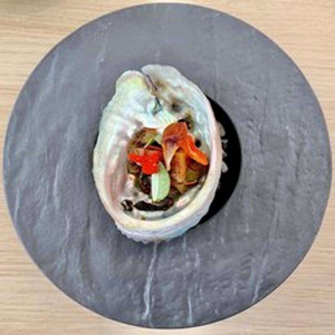 An elevated rendition of the iconic Taiwanese 'Three Cup' preparation, featuring succulent abalone meticulously braised to tender perfection. This luxurious seafood is infused with the harmonious trinity of fragrant sesame oil, rich soy sauce, and aromatic rice wine, delicately balanced with whispers of fresh ginger, garlic, and basil to create a profound symphony of savory, sweet, and aromatic notes.