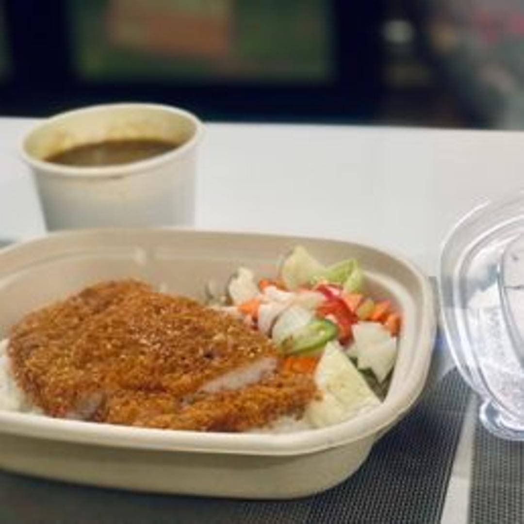 A Japanese rice bowl featuring a crispy, breaded and fried cutlet (typically chicken or pork) served over rice and topped with a rich and savory Japanese curry sauce.