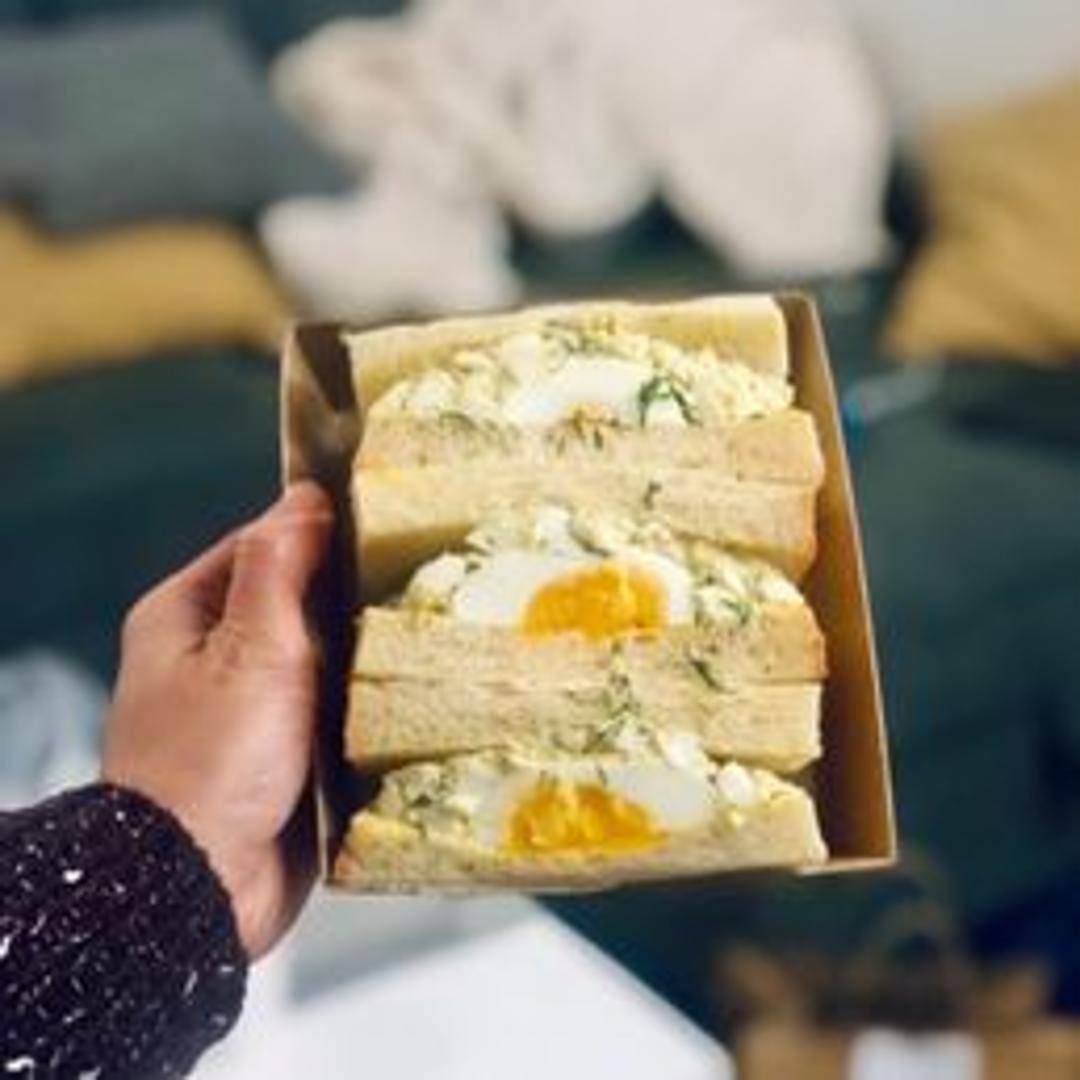 A creamy egg salad sandwich with a fresh dill flavor, made with hard-boiled eggs, mayonnaise, dill, and seasonings, served on your choice of bread.