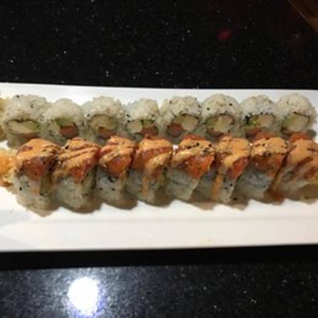 A sushi roll characterized by a creamy, often spicy, topping that cascades over the roll, resembling lava. The filling may include ingredients like crab, avocado, and cucumber. The creamy topping often contains scallops, shrimp, or other seafood baked in a rich sauce.