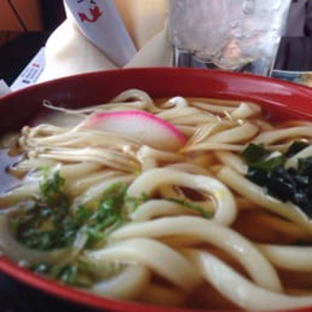 A comforting noodle soup featuring thick, chewy udon noodles in a flavorful broth. Garnished with crispy tempura, which may include shrimp and vegetables. The soup may also contain scallions, fish cakes, and seaweed.
