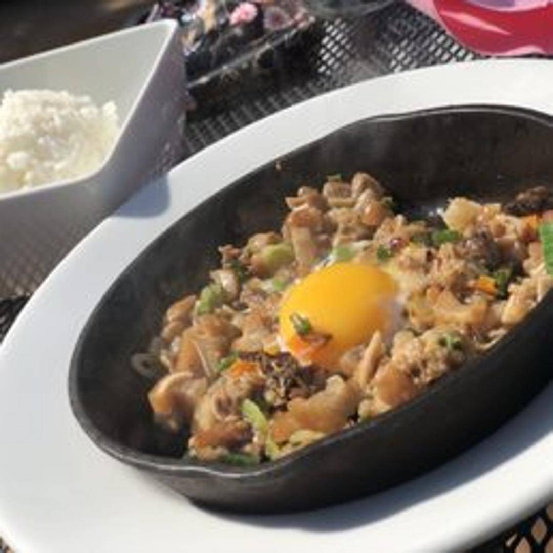 A flavorful and savory Filipino dish featuring chopped pork (typically from the face and ears), onions, and chili peppers, seasoned with a blend of spices and often served on a sizzling hot plate. May include chicken liver for added richness. Traditionally served with a calamansi garnish to squeeze over the dish for a tangy finish.
