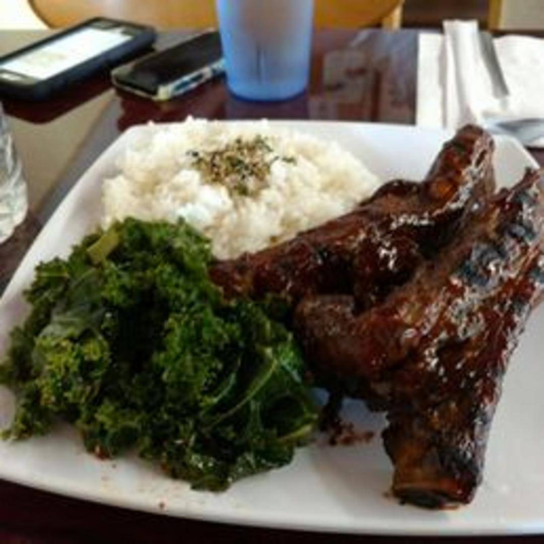Tender and juicy ribs marinated in a Korean BBQ sauce, grilled to perfection. The marinade typically includes soy sauce, garlic, ginger, and sesame oil, providing a sweet and savory flavor.
