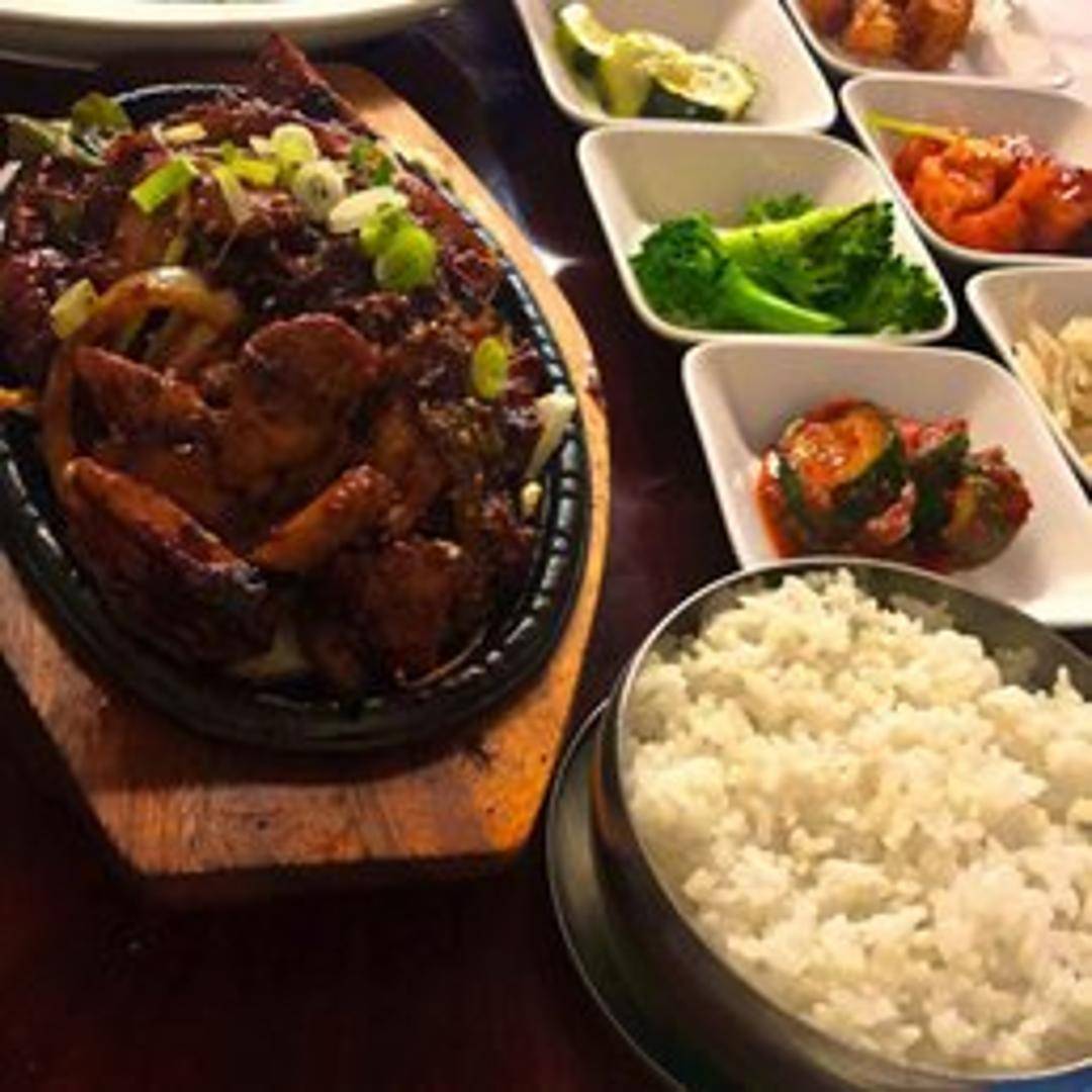 Tender chicken pieces marinated in a Korean BBQ sauce, infused with a blend of spices and possibly including gochujang for a slightly spicy and sweet flavor. Grilled or pan-fried, resulting in a smoky and savory dish.