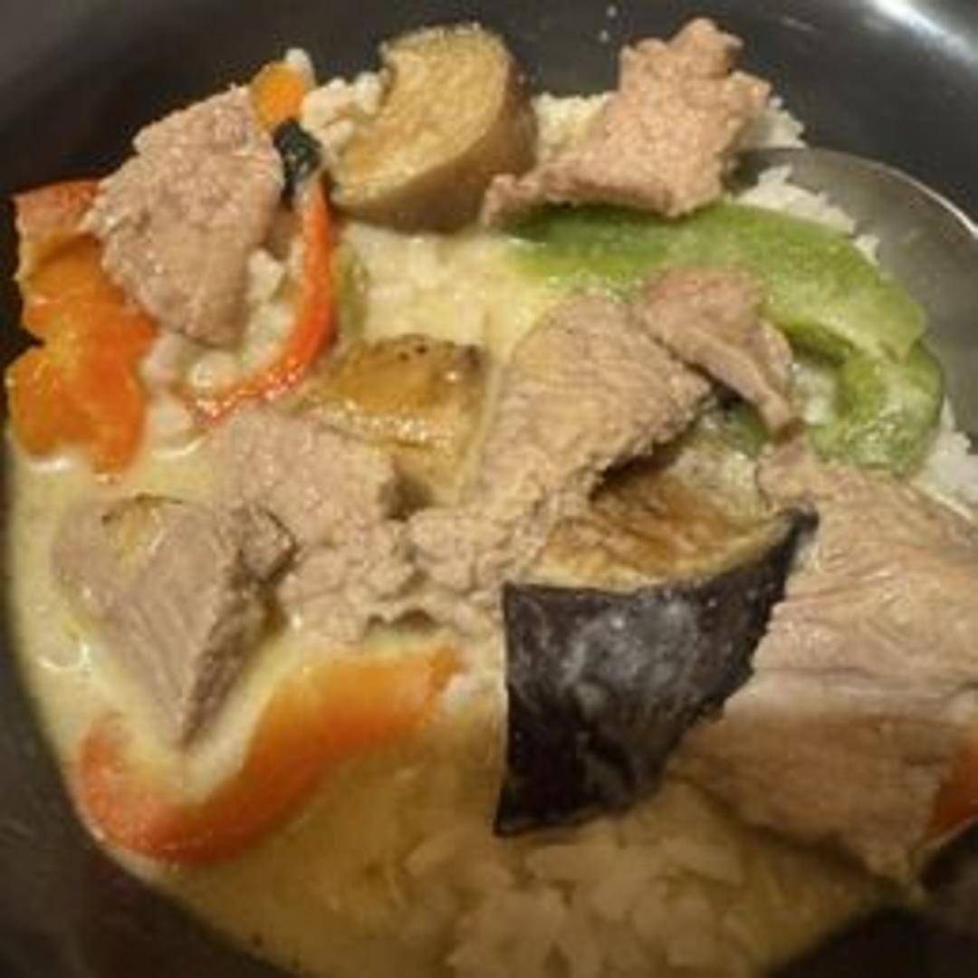 A spicy curry made with coconut milk, bamboo shoots, bell peppers, eggplant, basil, and your choice of protein (chicken, pork, beef, tofu, or shrimp). This curry is known for its vibrant green color and its intense, spicy flavor. The green curry paste is made with green chili peppers, lemongrass, galangal, and other aromatic herbs. A flavorful and aromatic curry served with jasmine rice. The spiciest of the curry offerings.