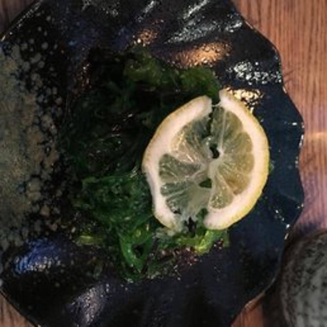 A refreshing salad of marinated seaweed, typically including varieties like wakame, tossed with sesame oil and seeds. Often has a slightly sweet and tangy flavor.