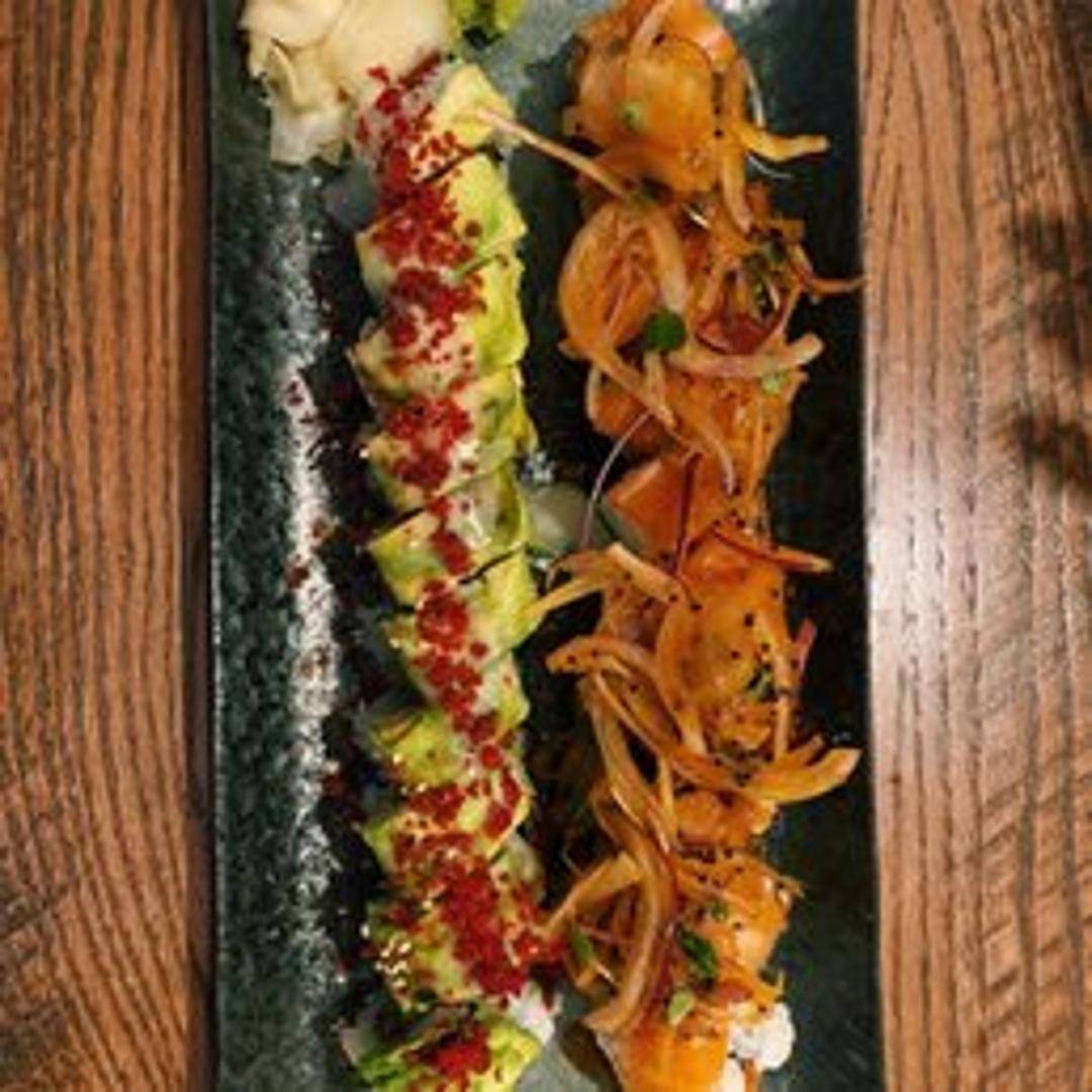A signature roll featuring [Specific ingredients if known, otherwise:] a unique combination of fresh seafood and flavorful sauces, expertly rolled and artfully presented.