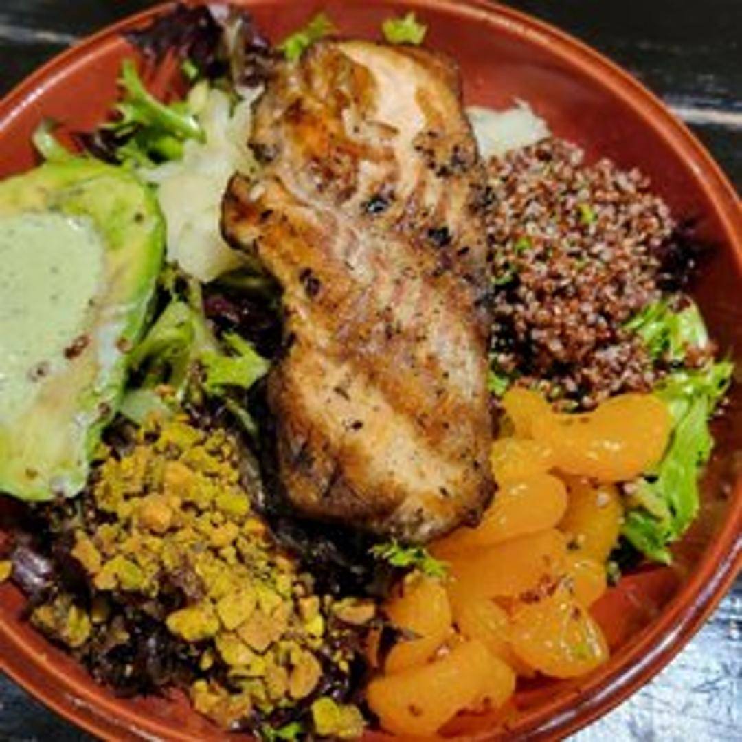 A hearty and wholesome salad packed with a nutritious blend of various grains like quinoa, farro, and bulgur. Often combined with a colorful array of fresh or roasted vegetables, herbs, and a light dressing for a fulfilling and flavorful meal.
