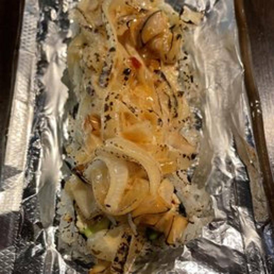 A specialty sushi roll featuring a unique combination of ingredients. (Please refer to the restaurant's menu or contact them directly for specific ingredient details).