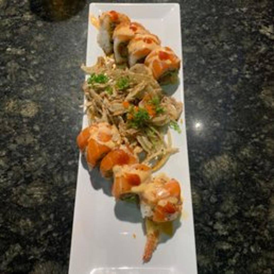 Salmon, avocado, cucumber roll deep fried and served with special sauce.