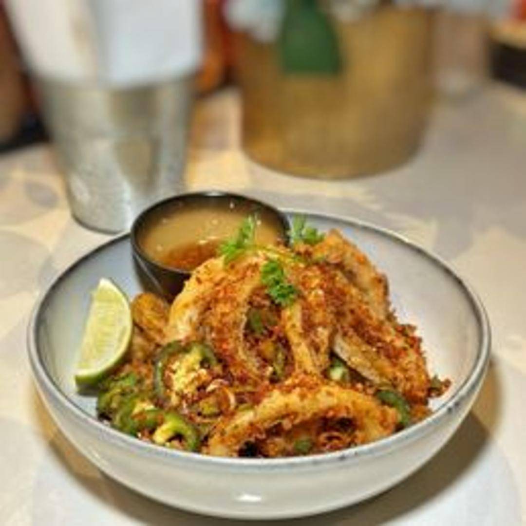 Crispy fried calamari tossed with salt, pepper, green onions, and jalapeños.
