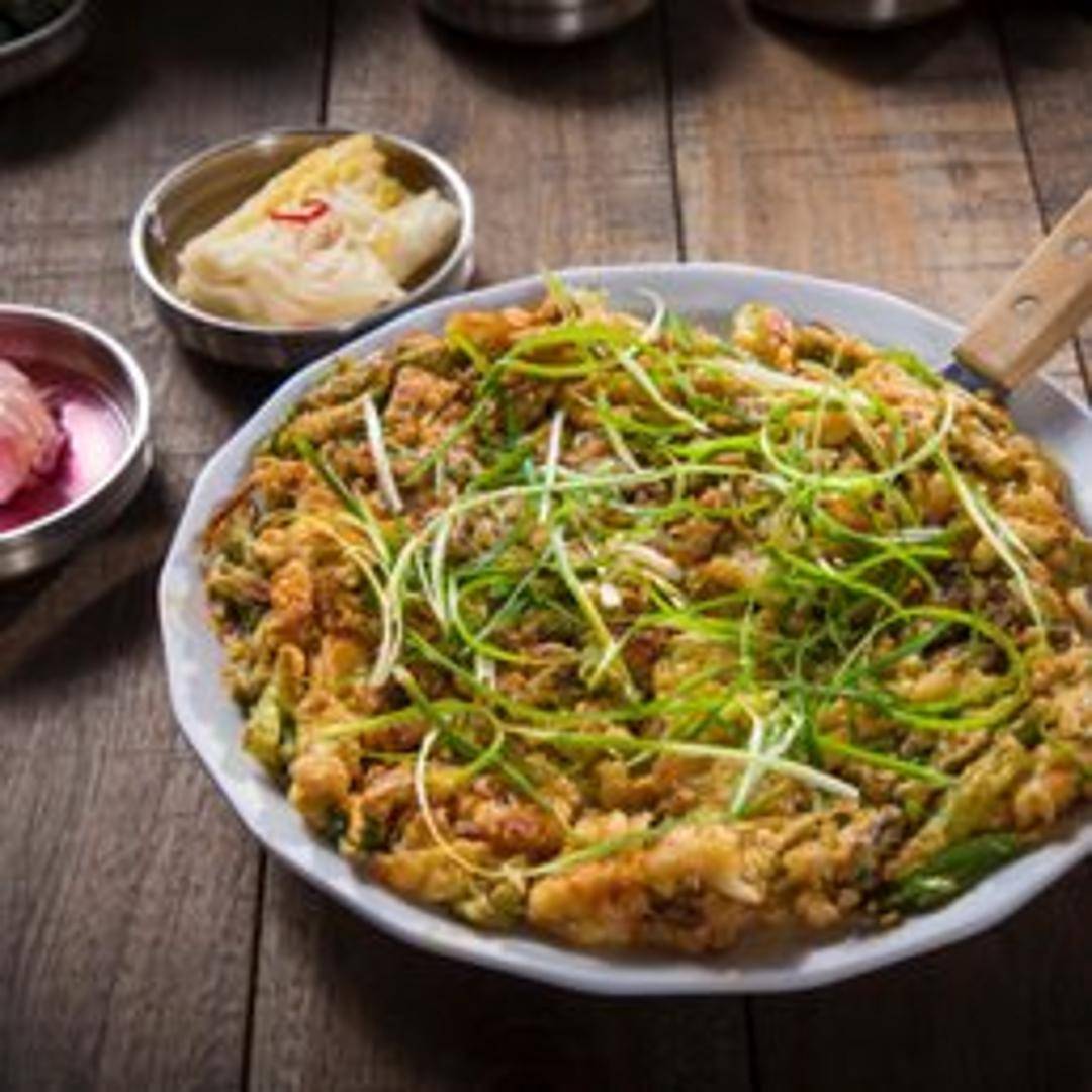 A crispy and savory Korean pancake loaded with an abundance of fresh seafood, including shrimp, squid, and oysters (subject to availability). Features a light and airy batter with scallions and other vegetables. Served with a flavorful dipping sauce made from soy sauce, vinegar, and sesame oil. A popular appetizer or shared dish.