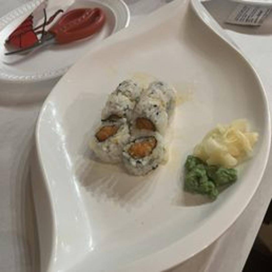 Freshly prepared sushi rolls featuring high-quality tuna, seasoned with a spicy chili sauce and rolled with rice and nori seaweed. Served with ginger, wasabi, and soy sauce.