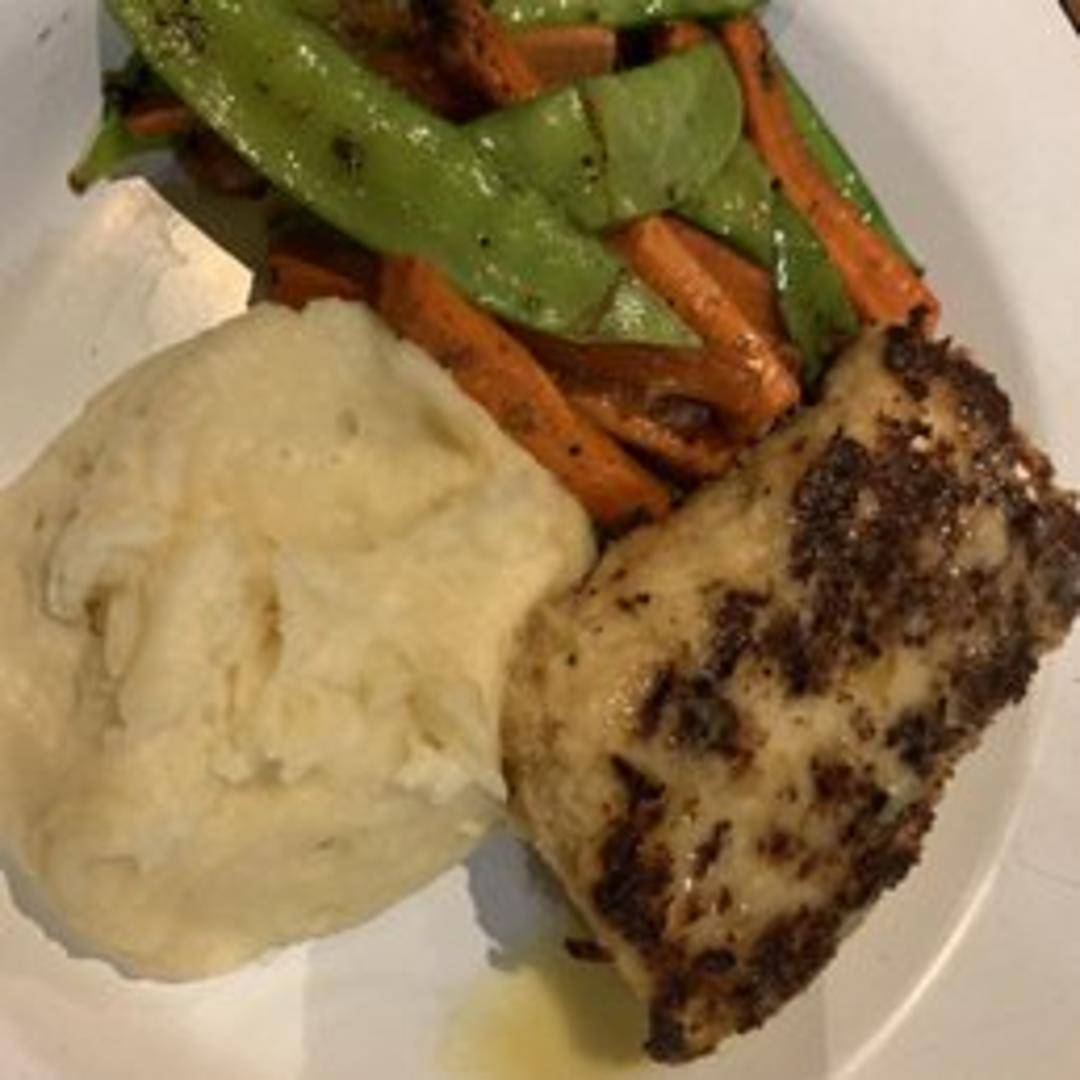 A premium fillet of delicate, flaky halibut, coated with a rich, buttery crust of finely crushed macadamia nuts. Pan-seared or baked to a golden finish, this dish offers a harmonious contrast between the tender, mild fish and the sweet, nutty crunch of the crust, often enhanced with a complementary sauce.