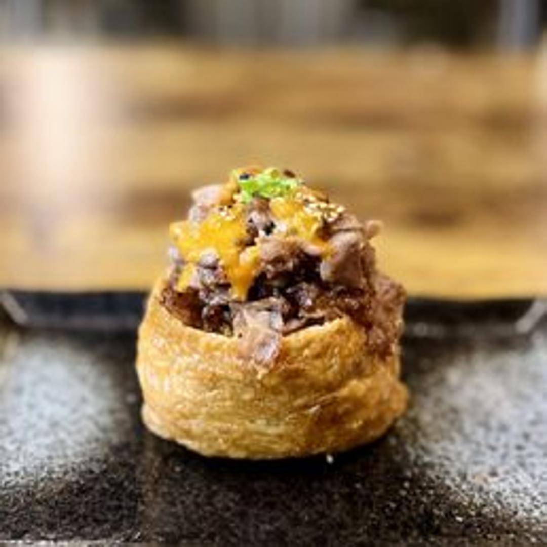 Tender slices of beef belly seasoned with the numbing and spicy mala sauce, encased in a light yubu skin. An intense experience with layered flavors of Sichuan peppercorns and chili oil, creating an unforgettable taste.