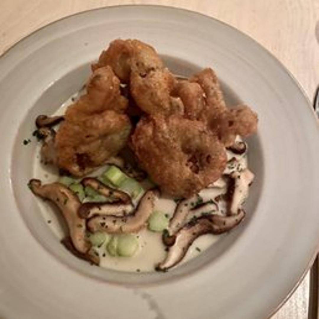 Exquisitely prepared soft shell crab, lightly encased in a crisp, golden tempura batter. This seasonal delicacy is fried to perfection, offering a delicate crunch that yields to the tender, sweet briny notes of the crab.