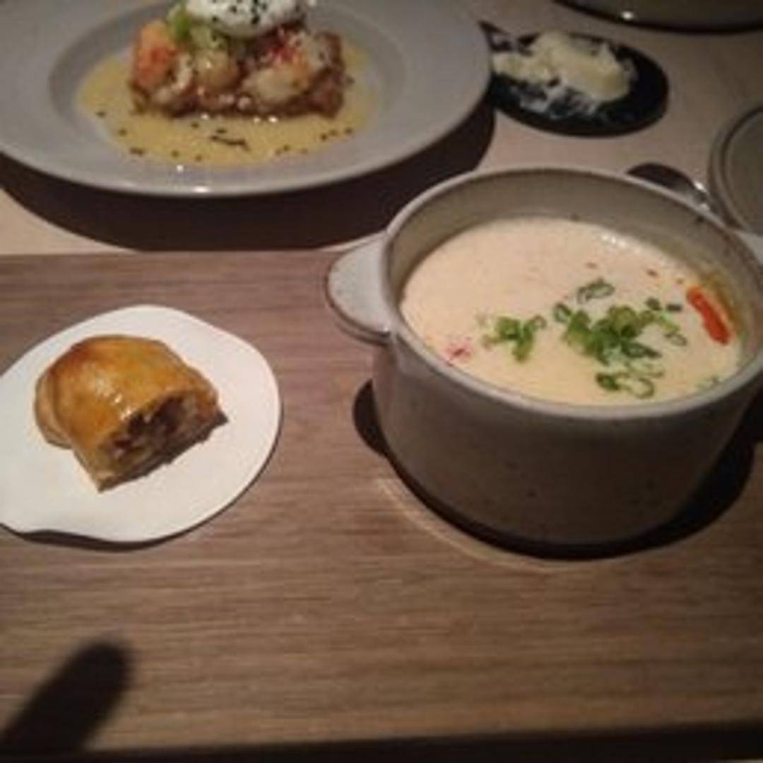 A velvety smooth cauliflower soup, meticulously puréed to achieve a luxurious texture and deep, subtle flavor. Delicately seasoned and elegantly presented, it offers a comforting yet sophisticated start to your meal.