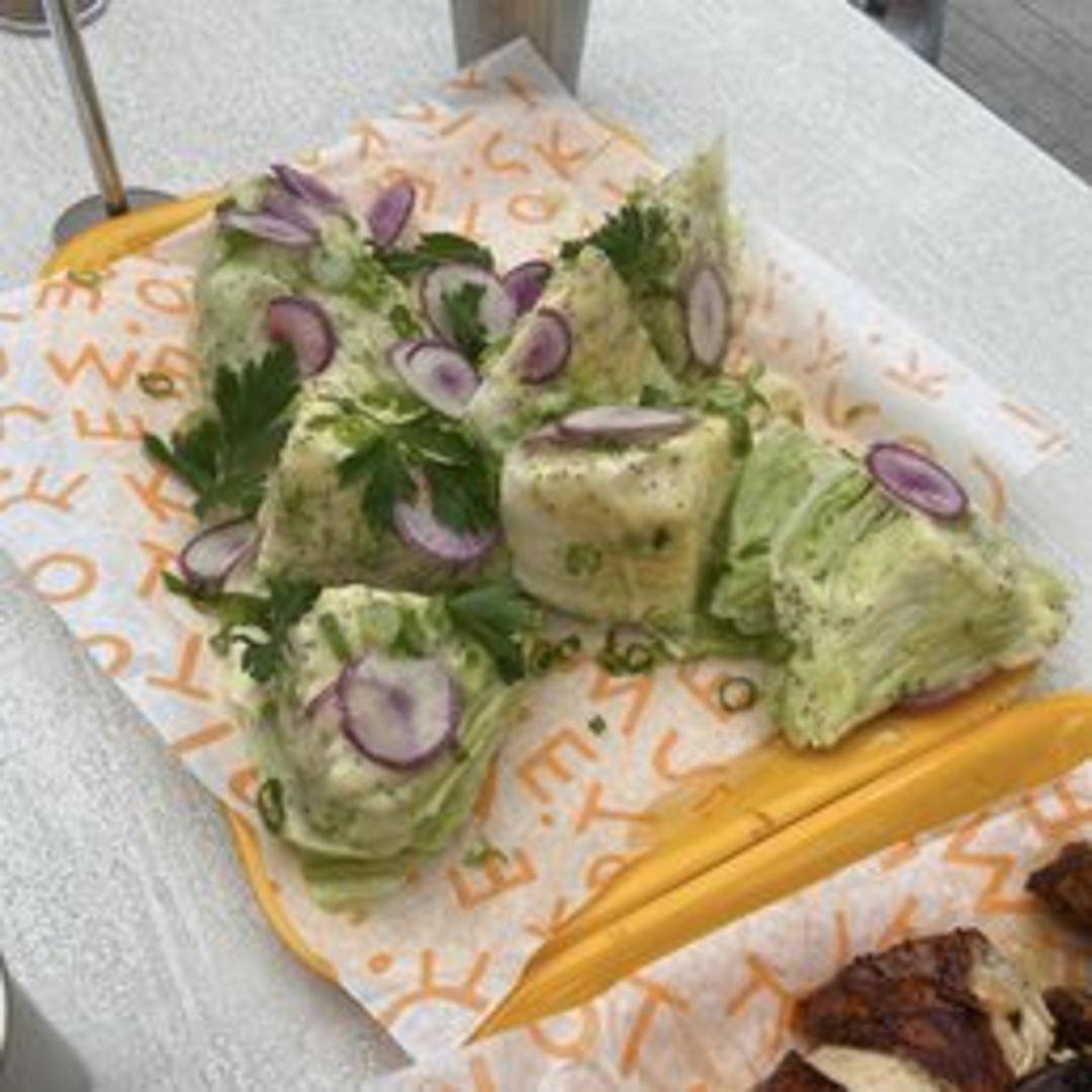 A family-style meal featuring a whole rotisserie chicken, sides, and pita bread, perfect for feeding four people.