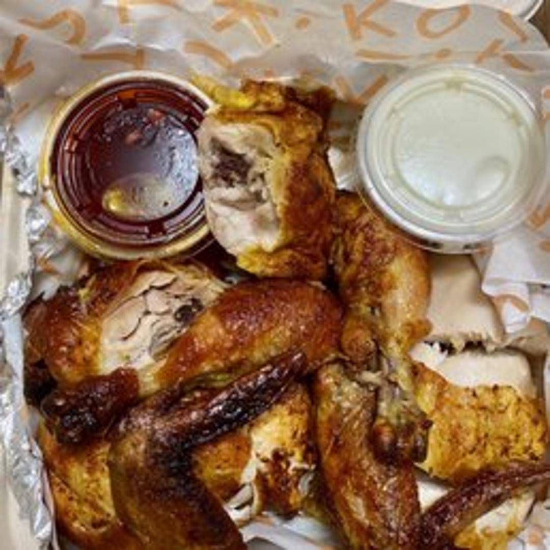 A perfectly roasted whole chicken, seasoned with Kismet Rotisserie's signature blend of herbs and spices. Crispy skin and juicy, flavorful meat. Served with pan drippings.