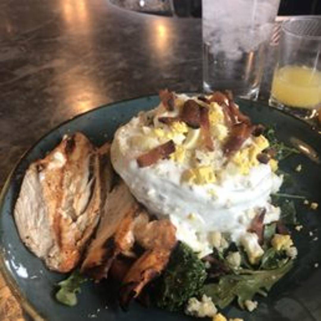 Savor our perfectly seasoned and char-grilled chicken breast, served on a toasted brioche bun. This wholesome sandwich is layered with fresh crisp lettuce, ripe tomatoes, red onion, and a touch of our signature roasted garlic aioli, creating a delicious and satisfying meal.