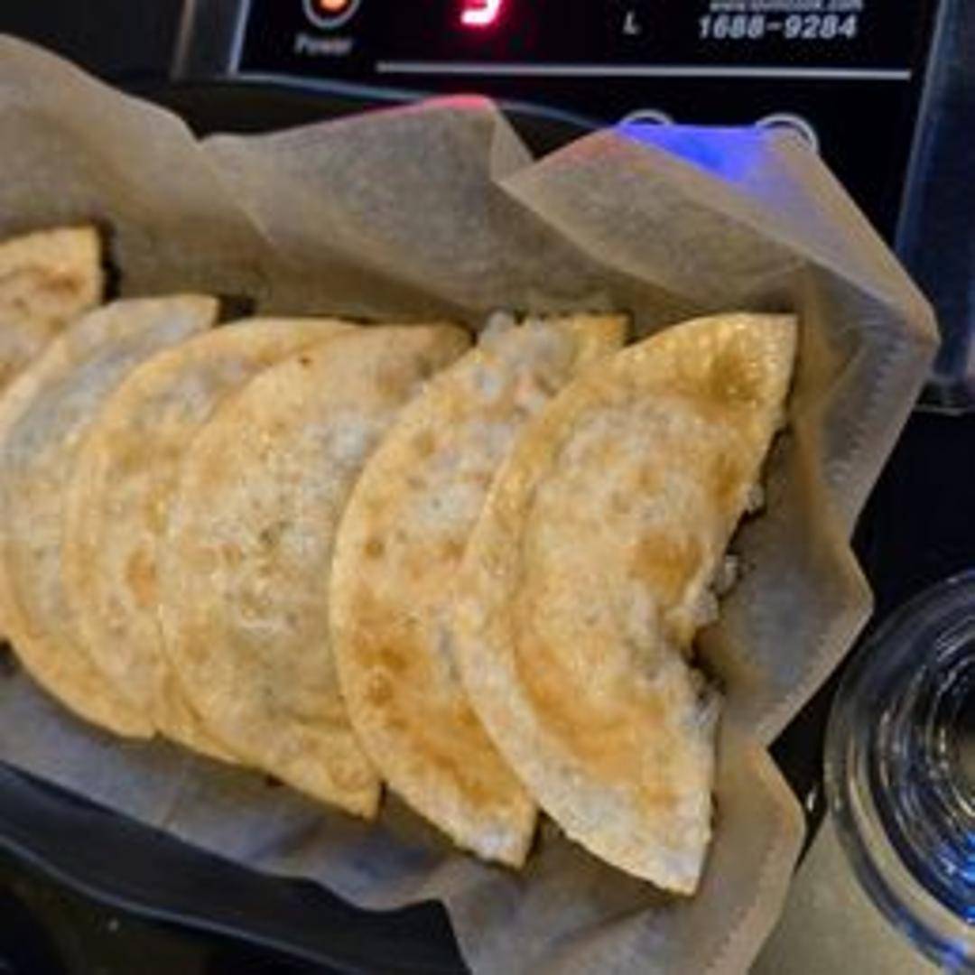 Korean dumplings filled with a mixture of ground meat (usually pork or beef), vegetables, and seasonings. Can be steamed, pan-fried, or deep-fried. Served with a soy sauce-based dipping sauce.
