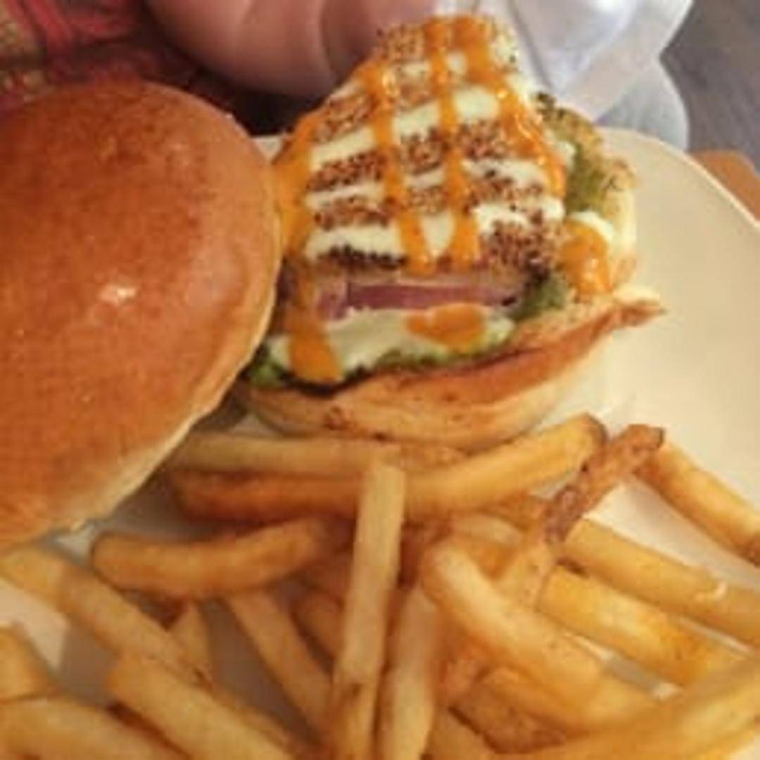 Seared tuna steak served on a toasted bun with lettuce, tomato, and a special sauce. Served with a side of your choice.