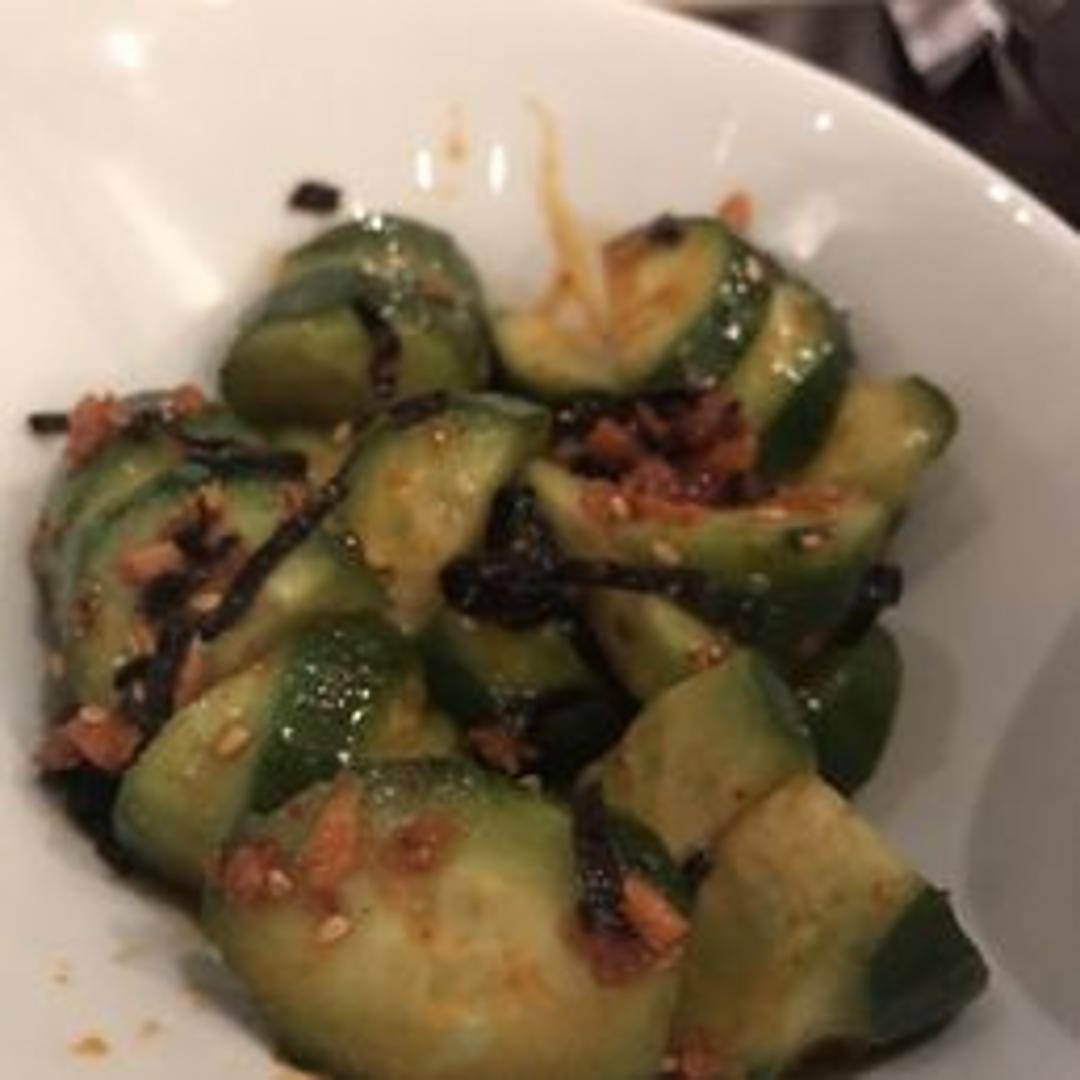 Thinly sliced, marinated Japanese cucumbers, prepared in the Otsumami style. Expect a refreshing and slightly tangy flavor, perfect as a light snack or palate cleanser. Seasoned with traditional Japanese ingredients, offering a crisp and satisfying bite.