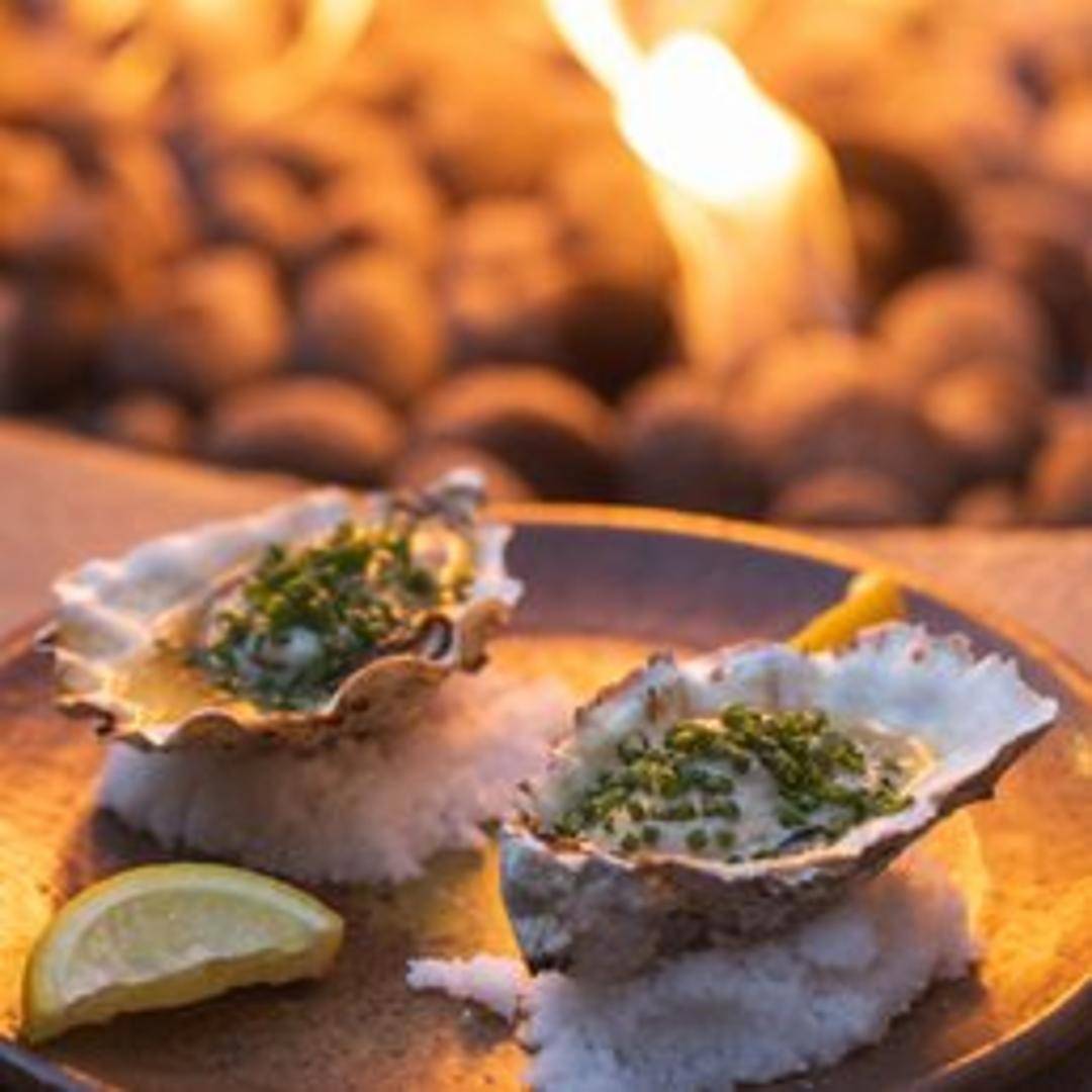 Fresh oysters grilled over hot charcoal, topped with garlic herb butter and a sprinkle of breadcrumbs. Served hot.